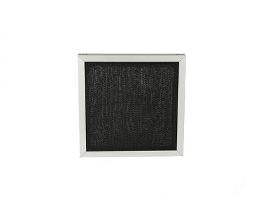 采用轻便的板式结构,可重复利用的金属外框,以P.P纤维 纺织成型制成一体的尼龙网,耐磨、使用寿命长,综合使用效果好,初阻力低,防尘性能强,可多次清洗再利用,更换简便安全, 用户可自行操作,简洁方便。